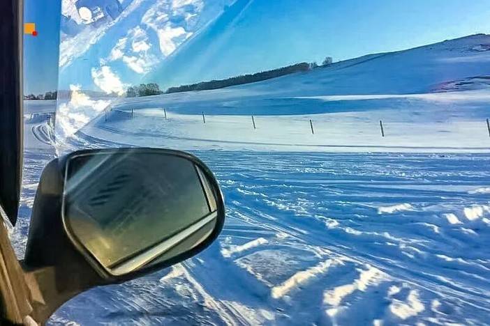 在无垠雪原上挥洒豪情离开河谷,视野豁然开朗。透风沟是一片开阔的丘陵地带,厚厚的积雪覆盖了所有起伏,大地只剩下最简洁、最纯粹的线条。在这里,越野车才能尽情释放它的野性,在无人打扰的雪原上压出第一道车辙,驶过一个个被积雪温柔覆盖的草垛,冲向山梁之巅,俯瞰这片被寒风雕刻出的、浩瀚无边的白色王国。